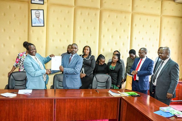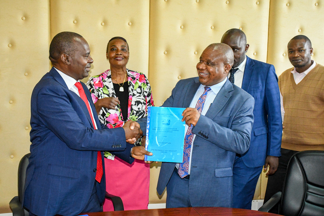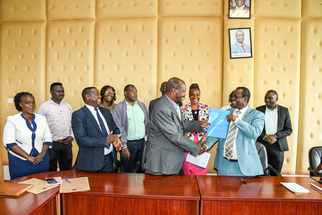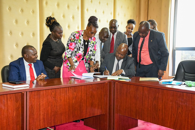 The Deputy Vice-Chancellors (DVCs) for Administration, Finance, Planning & Development (A, F, P&D) and Academics, Research & Students Affairs (ARSA), alongside the university management, have signed the 2024/2025 Performance Contract. The contract sets key performance expectations for the academic year, focusing on leadership, teamwork, and strategic growth. Speaking at the event, DVC (ARSA) Prof. Gilbert Nduru reaffirmed his commitment to diligence and collaboration, emphasizing teamwork as a driving force for success. Similarly, DVC (A, F, P&D) Prof. Jonah Kindiki highlighted the importance of strong leadership and cooperation in achieving shared goals. The contract will be cascaded to departmental heads for signing and implementation, ensuring alignment with the university’s objectives.