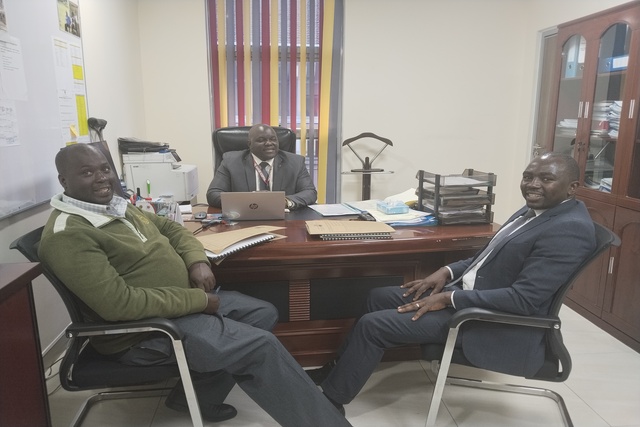 L-R: Dr. Martin Mutie, Prof. Paul Kamweru, Dean Faculty of Science and Technology and Mr. Nicodemus Odongo, Director of Strategy and Innovation (centre)