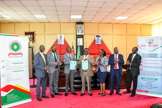 As part of the initiative, NCRC announced mentorship programs and attachment opportunities for Chuka University law students, reinforcing the institution’s commitment to practical legal education and research. The M.O.U marks a significant step in strengthening collaboration between academia and crime research institutions, offering students valuable exposure and career-building opportunities.
