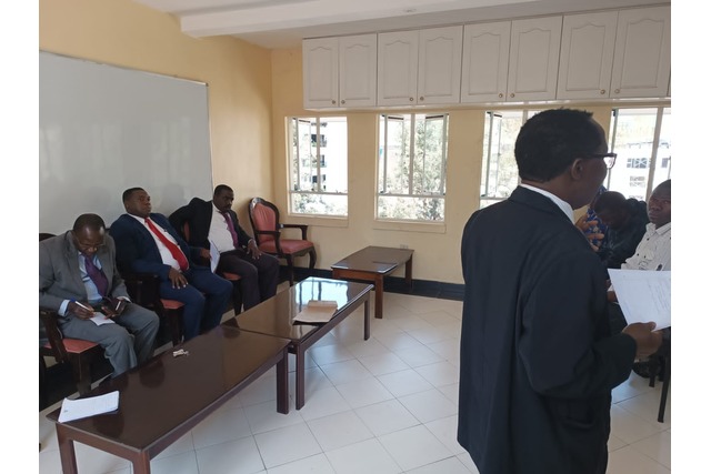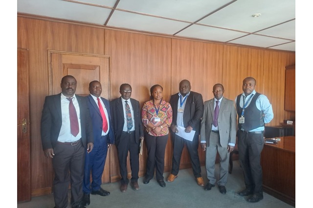 L-R: Dr. Mwathi (COD Computer Science), Dr. Chege (Registrar AA), Dr. Benjamin Kanga (Dean of Students), Priscila Njeri, Mr. Gilbert Muthomi, Prof. Isaac Nkari (Dean FBUST) and Mr. Wilfred Muthomi