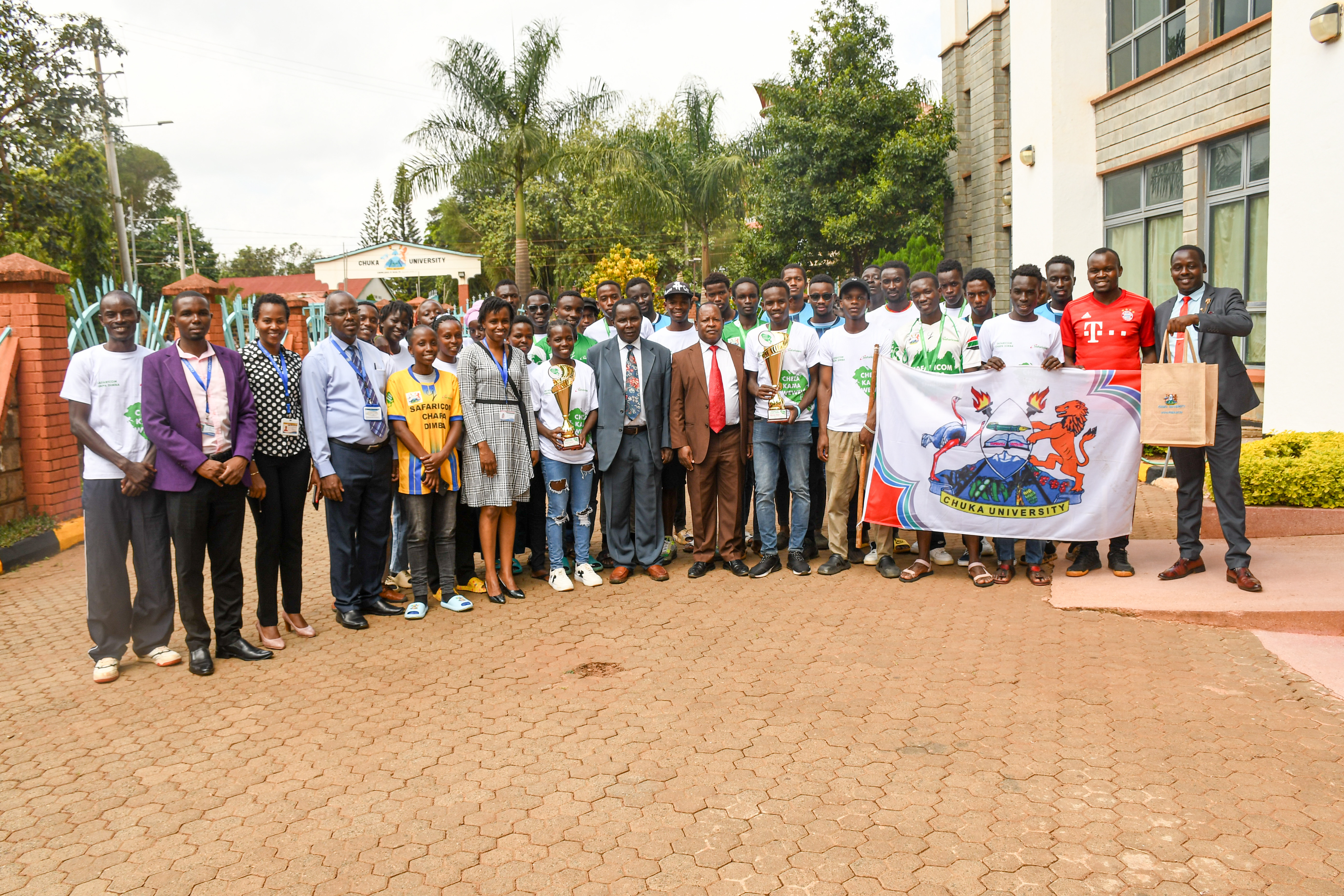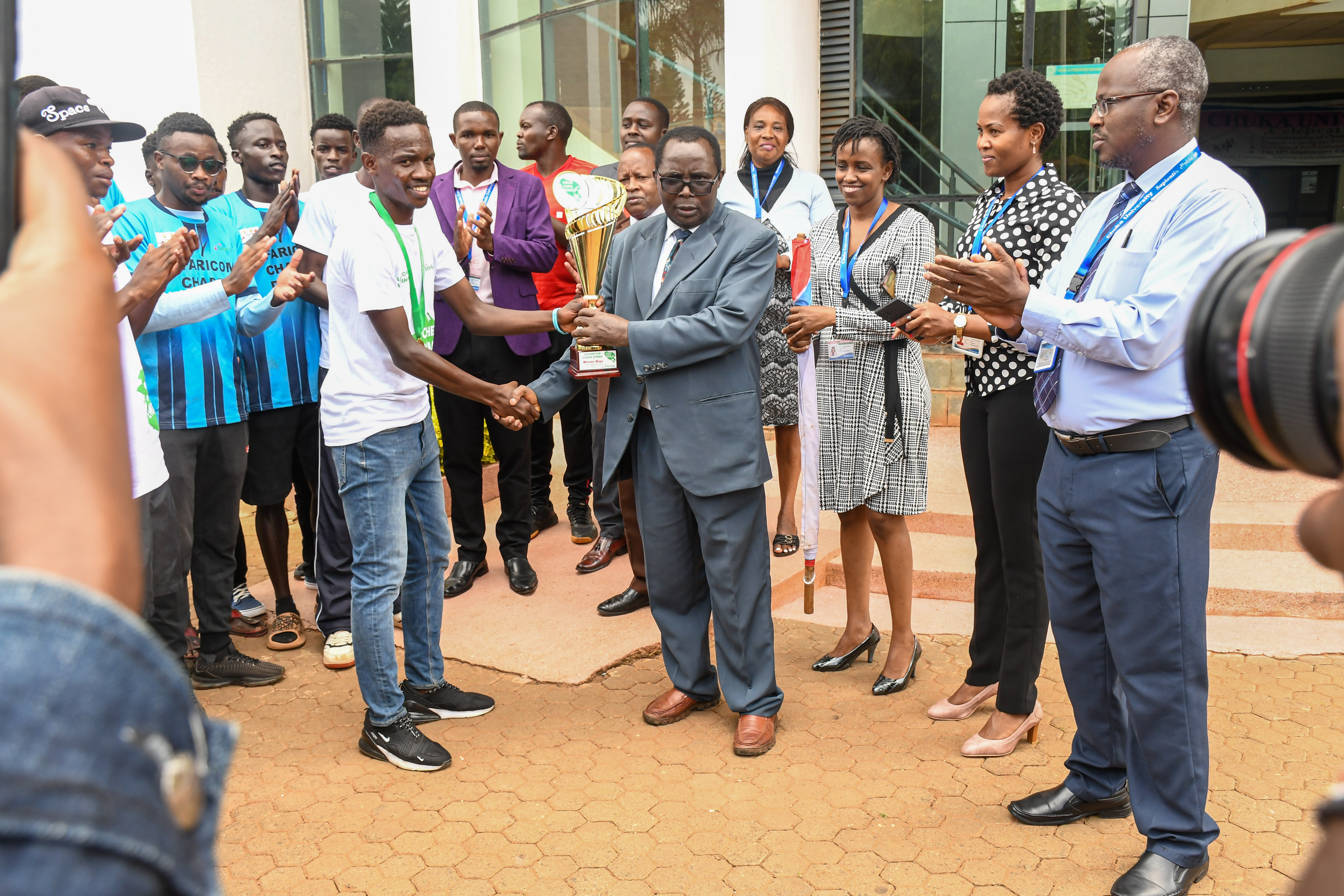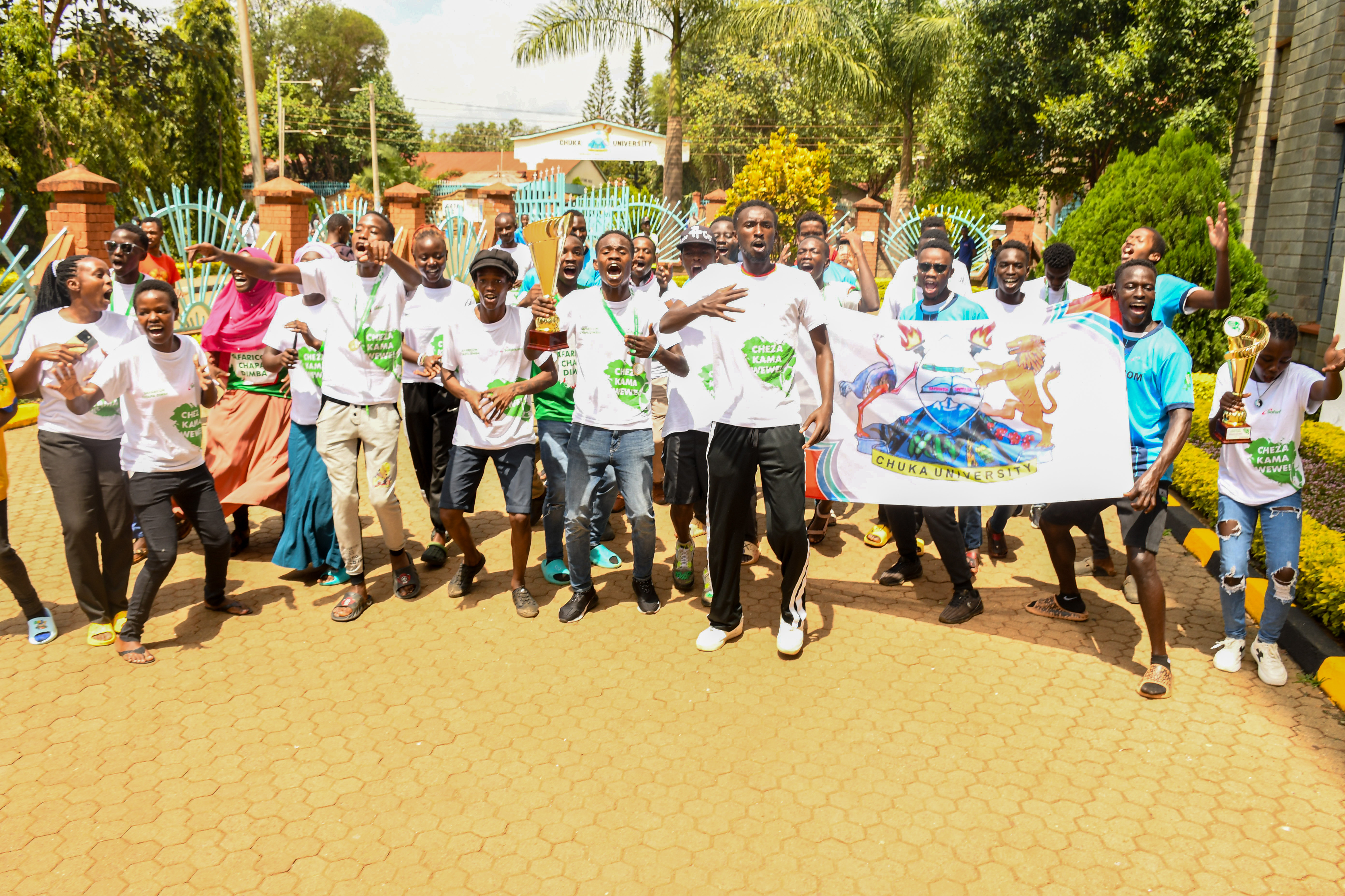 Both teams were led to a beautiful homecoming led by the office of the dean of students Dr. Benjamin Kanga. Dr. Kanga praised the teams for their relentless focus to clinch the coveted titles. He expressed the University’s commitment to support and nurture talent through sports activities. Well done both Scorpions and Scarlets for flying the Chuka University flag high.