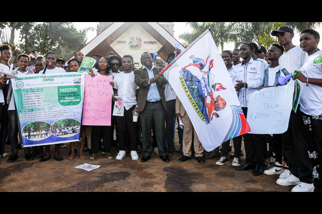 The Office of the Vice-Chairperson Chuka University Student Association (CUSA) in partnership with the Office of Student Welfare today held a mental health awareness walk with the theme #Not Okay is Okay. This exercise was a prerequisite to a mental health, addiction, and triple threat forum on Sunday 31st March 2024 at the Pavilion from 2:00 pm. This initiative aimed to destigmatize mental health issues and promote a supportive environment for students to seek help when needed. This campaign is spearheaded by Miss Faith Jebet, the Vice-Chairperson, CUSA.
