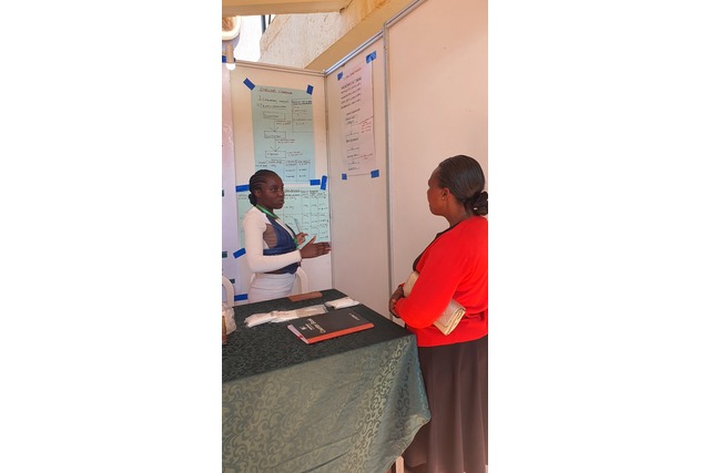 Miss Winnie Kawira demonstrates her innovation at the innovation week
