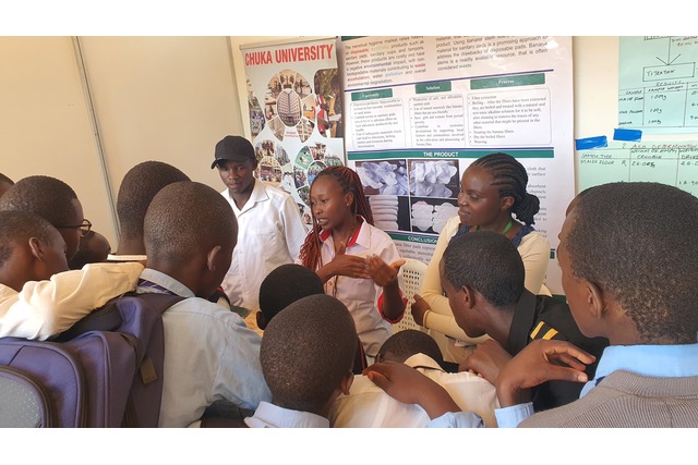 One of the standout innovators was Pamela Triza Apuko, a Chuka University student revolutionizing menstrual health by creating biodegradable sanitary pads made from banana fiber. Apuko’s invention, showcased at the event, attracted widespread interest for its potential to address two critical issues: providing affordable, safe sanitary products to women and reducing the environmental impact of traditional, non-biodegradable pads.