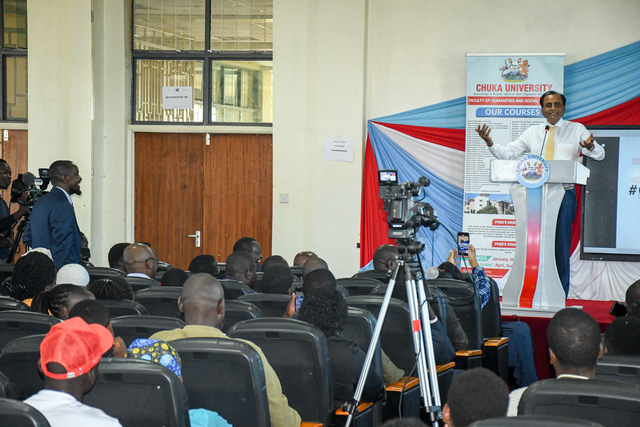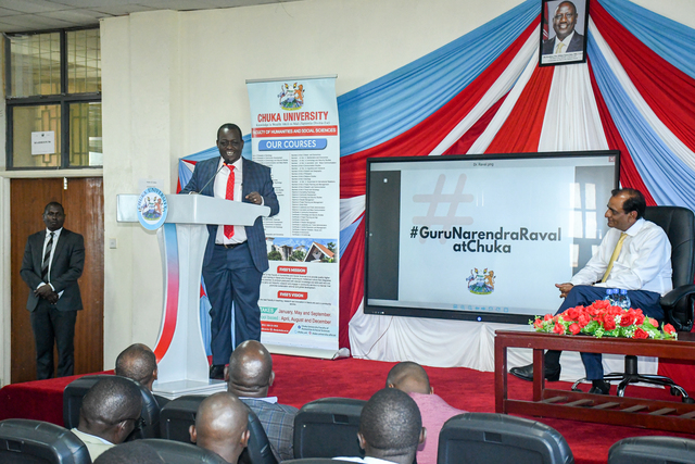 Renowned industrialist and philanthropist Narendra Raval, popularly known as “Guru,” inspired Chuka University students in a public lecture held on 8th November 2024, focusing on entrepreneurship, wealth creation, and personal purpose. The highly anticipated event attracted hundreds of students, faculty, and esteemed guests, who gathered to hear Raval’s insights on transforming challenges into opportunities. In his address, Raval, chairman of Devki Group of Companies, shared lessons from his journey, highlighting the importance of resilience, adaptability, and an unwavering entrepreneurial spirit. “Success demands courage, persistence, and the ability to see failure as a stepping stone,” he stated. He also emphasized that entrepreneurship should go beyond profit-making and focus on creating long-lasting societal value. Among the distinguished guests present were Amb. Prof. Julius Bitok, Principal Secretary for Immigration and Citizen Services; Prof. Isaac Kibwage, Vice-Chancellor of Egerton University; Hon. Patrick Munene, MP for Chuka Igambang’ombe Constituency; and Hon. George Murugara, MP for Tharaka Constituency. Their attendance underscored the lecture’s significance and the support for youth empowerment in the region. Throughout the lecture, Raval encouraged students to start their entrepreneurial journeys with the resources available to them, rather than waiting for ideal conditions. “You don’t need a perfect plan to start,” he advised. “Success is built through consistent effort and the willingness to learn and adapt.” The Q&A session allowed students to delve deeper into Raval’s experiences, with questions on balancing family life and business, staying motivated in tough times, and handling failure. Raval shared candid stories, including challenges he faced while expanding his business internationally, stressing the importance of thorough preparation and maintaining a purpose-driven focus. Student Mary Njoki, a third-year business student, described the lecture as “one of the most inspiring talks I’ve ever attended,” adding that it gave her a new perspective on entrepreneurship and life goals. The Vice-Chancellor Professor Henry Mutembei expressed gratitude to Raval for his impactful insights, adding that Raval’s journey exemplifies the values of integrity, determination, and community-focused growth that Chuka University strives to instill. The lecture was organized by the Dr. Christopher Kiboro, the Dean Faculty of Humanities and Social Sciences. Raval concluded by reminding students that Kenya’s future lies in the hands of visionary leaders who combine entrepreneurial spirit with a purpose to serve society.