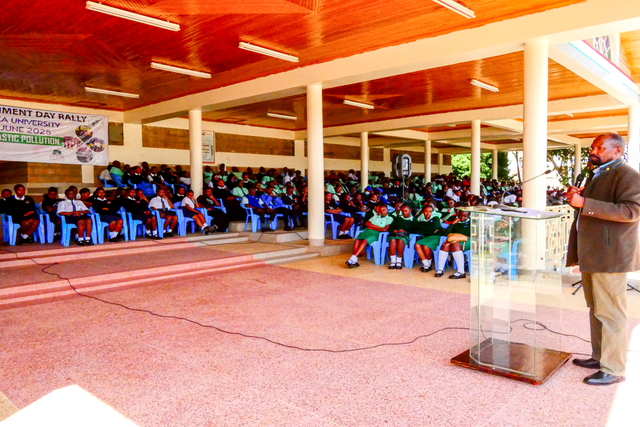 Prof. Gilbert Nduru, DVC Academic, Research, and Student Affairs, emphasized the urgent need to tackle plastic pollution. He reaffirmed the university’s commitment to sustainability through academic integration, student innovation, and community clean-ups, urging all stakeholders to take collective responsibility in ending plastic waste.