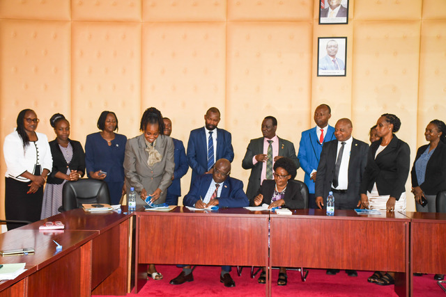 The Chuka University Council, represented by Council Chairman Prof. David Serem and Ms. Linet Kwamboka, signed the 2024/2025 performance contract on behalf of the university. The university management witnessed the signing exercise aimed to formalize the institution’s goals and commitments.