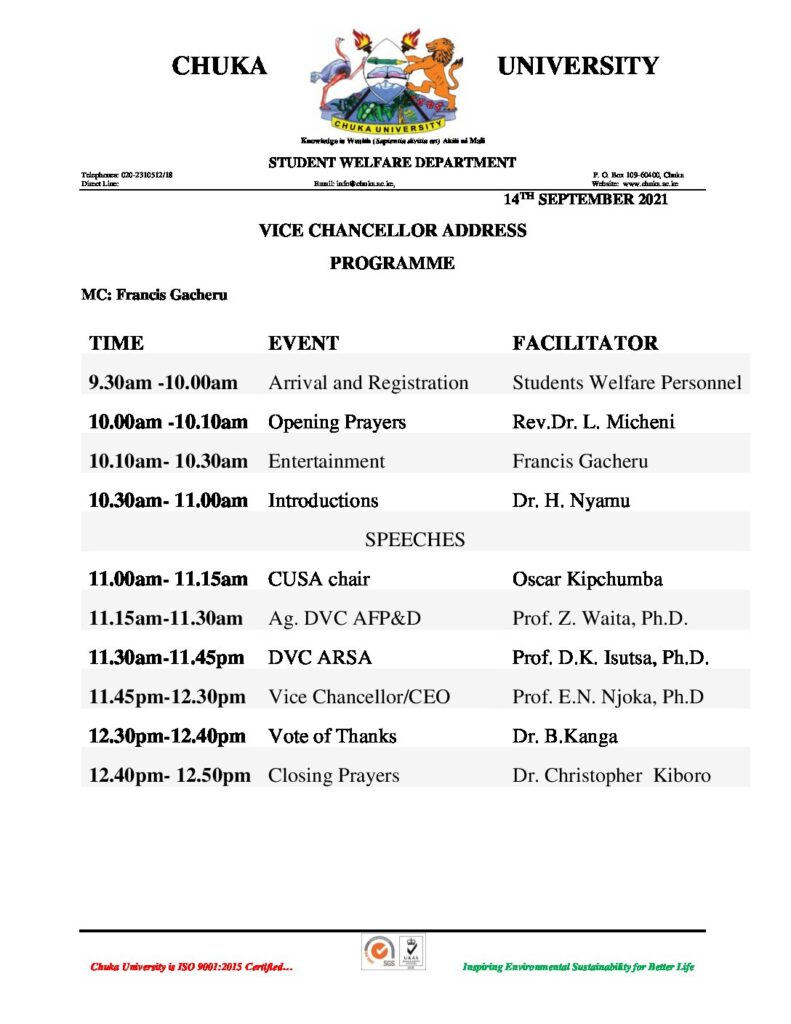VICE CHANCELLOR ADDRESS PROGRAMME