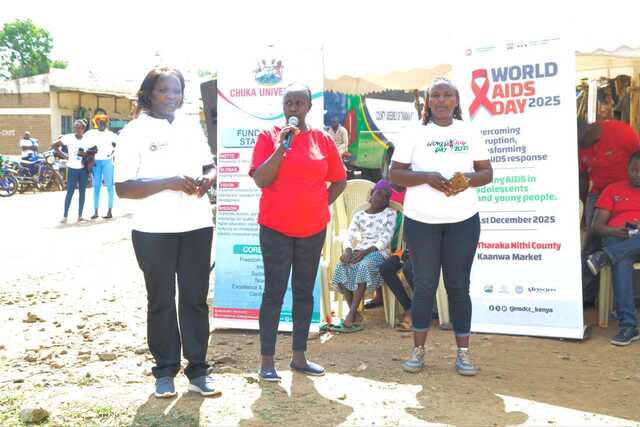 Chuka University marked World AIDS Day with a vibrant walk and community outreach program in the Kaanwa area of Chuka, Tharaka Nithi. This year’s theme, “One Race, One Goal – End AIDS in Adolescents and Young People,” highlighted the university’s commitment to raising awareness and supporting efforts to eliminate HIV/AIDS among the youth. The event brought together students, staff, and community members to promote education, testing, and prevention strategies aimed at protecting young people from the spread of HIV/AIDS.